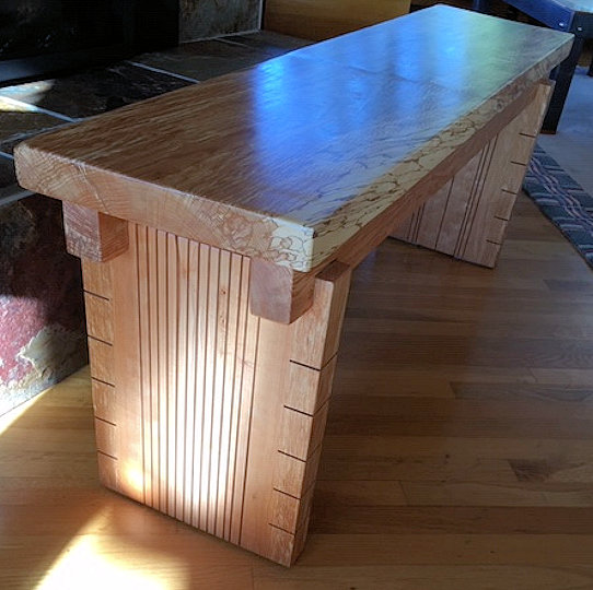 Craftsman style bench, spalted maple, end view,