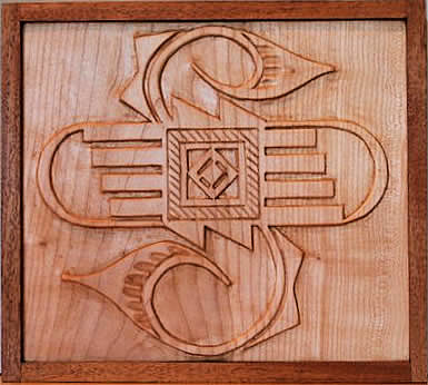Hopi bird design bas-relief, maple w/sapele frame