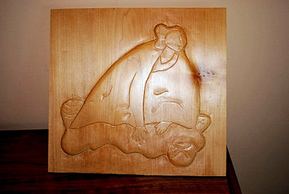 R. C. Gorman design bas-relief, maple